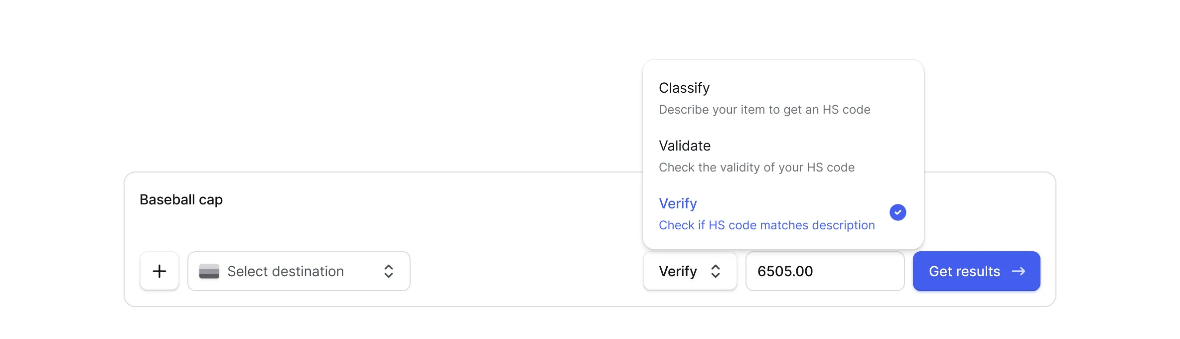 When providing an HS code to Classify, you can check for validation or check your HS code's coherency. If you don't specify your preference with your provided HS code, we will default to validation.